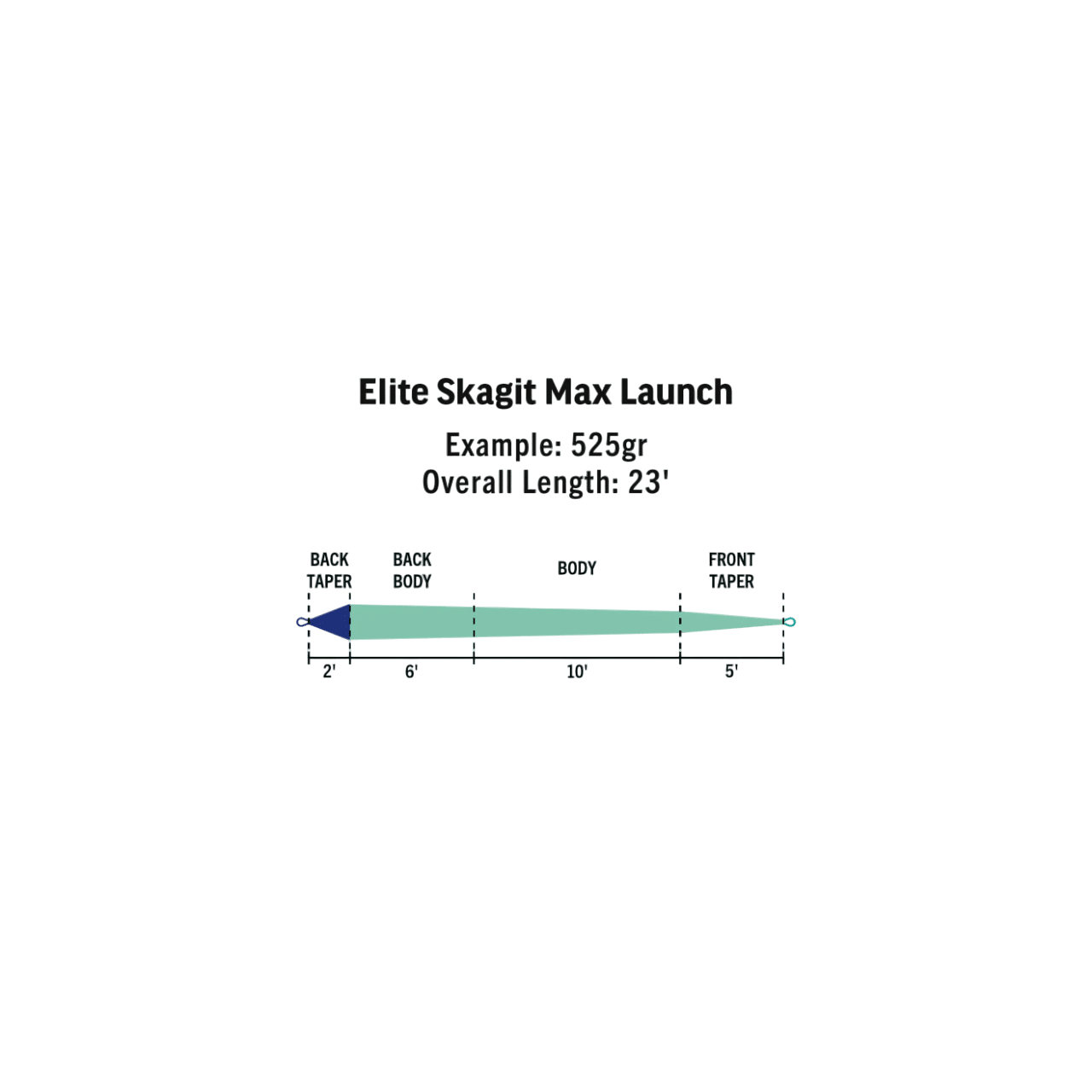RIO Skagit Max Launch heads deliver the power needed to cast large flies and sinking tips more elegantly than ever before. The unique weight distribution deeply loads rods for long, powerful casts, while the refined taper design generates incredibly smooth loops which transition seamlessly from head to tip to fly. The low stretch core gives incredible levels of sensitivity when casting and fishing, and provides enhanced detection of takes, more positive hook sets, and far greater control when playing a fish. In addition, this line is built with SlickCast, creating the slickest, most durable coating on the market—producing the least amount of friction ever measured in a fly line.